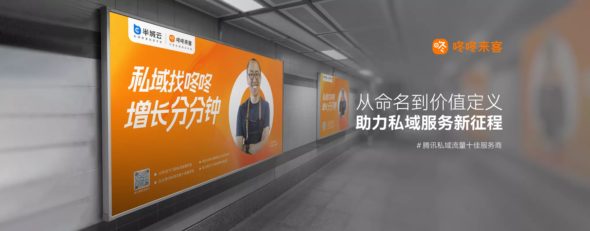 一条优质品牌广告语的需要打动客户,要号召行动,有利益承诺。我们严格遵循此标准,从品牌名称出发策划“私域找咚咚,增长分分钟”的广告语,动词“找”指令性词汇,植入用户脑中,促使行动;品牌名称“咚咚”,品牌名嵌入广告语,受众不断重复记忆"咚咚"品牌名;利益点“增长”,增长是目标用户最关心的点,也是最大的痛点和目的;口语化“分分钟”,"分分钟"和"找咚咚"押韵,朗朗上口,简短有力、有韵律感,重复传播容易形成洗脑效果!